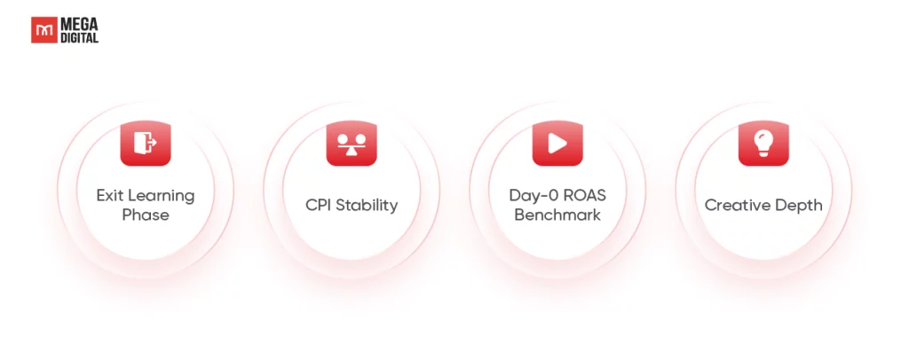 - Exit Learning Phase: The ad group must have generated at least 50 conversion events (installs) within 7 days. For Hyper-Casual, volume accumulates fast, so ensure this stability holds for at least 2 consecutive days.