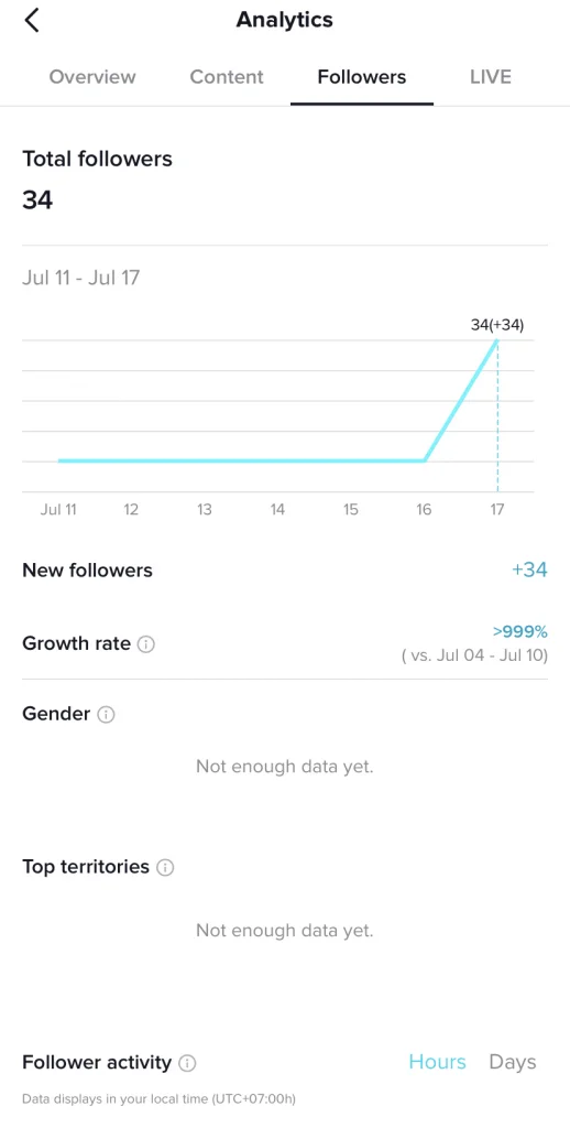- Follower Activity: This shows you when and how often your followers are active on TikTok.