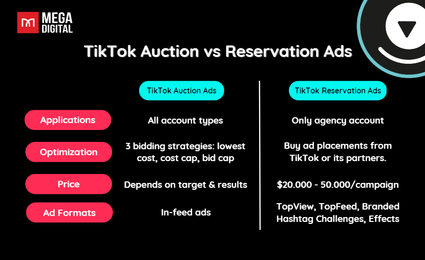 When you first get started with TikTok advertising, it may be confusing that among dozens of TikTok ad formats, some allow you to set up on your own while others do not. This is strictly related to the two ad distribution mechanisms on TikTok: TikTok Auction vs Reservation Ads. Let Mega Digital help you fully understand the difference between them.