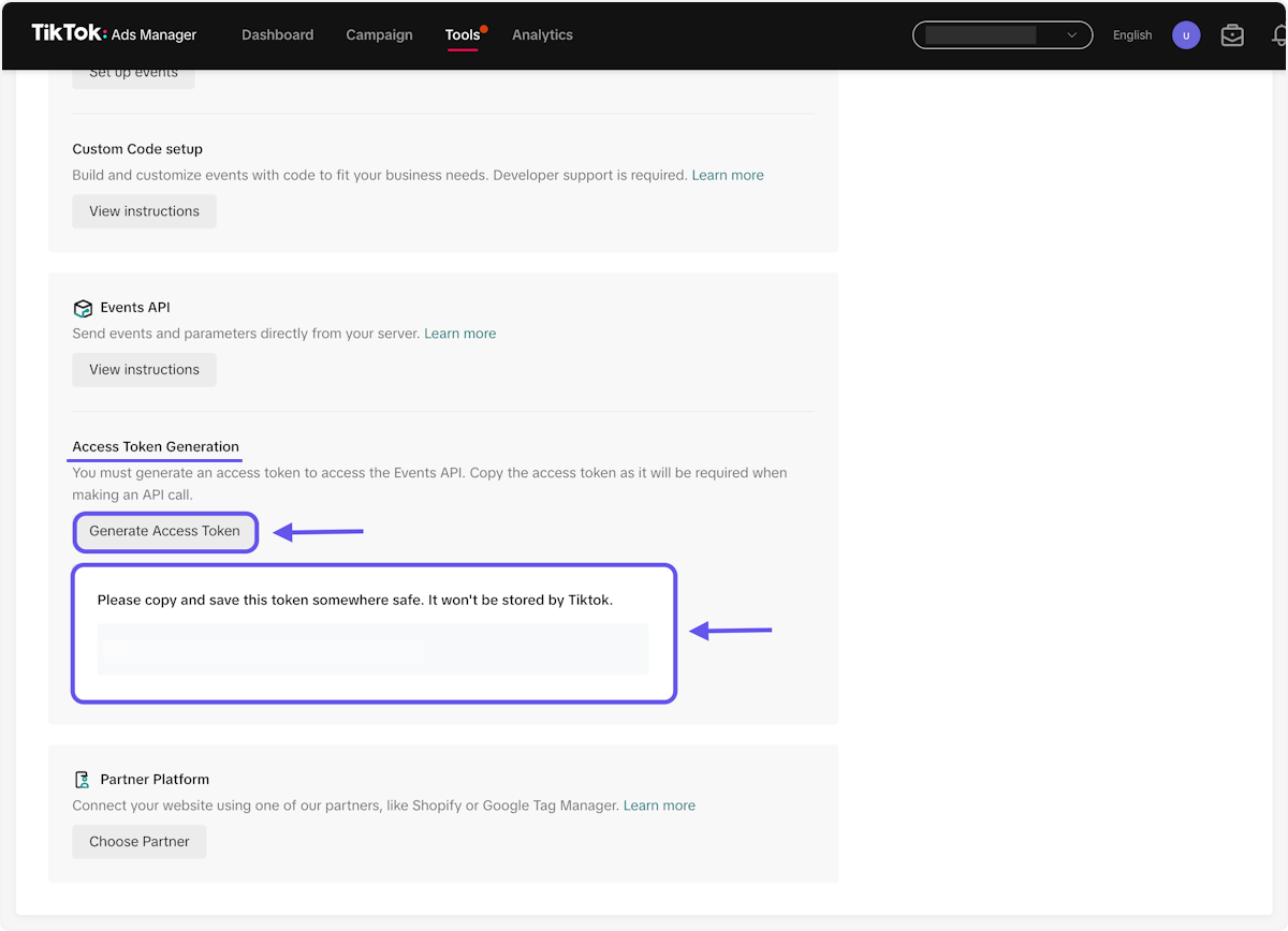 Ensure a secure connection between your server and TikTok’s server by properly generating an access token in the Events Manager. Follow TikTok’s security guidelines and rotate tokens if necessary.
